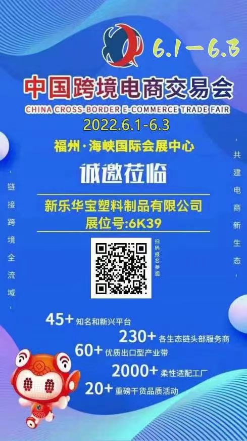 新樂華寶塑料制品有限公司于2022年6月1-3日跨境電商交易會,誠邀您的參加!