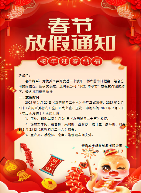 2025春節(jié)放假通知